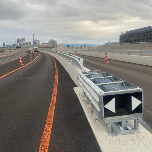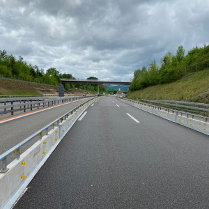 DynaGate is a movable crash barrier system that enables central reservation crossings, e.g. in the area of engineering structures. The system consists of either one or two mobile crash barrier systems.