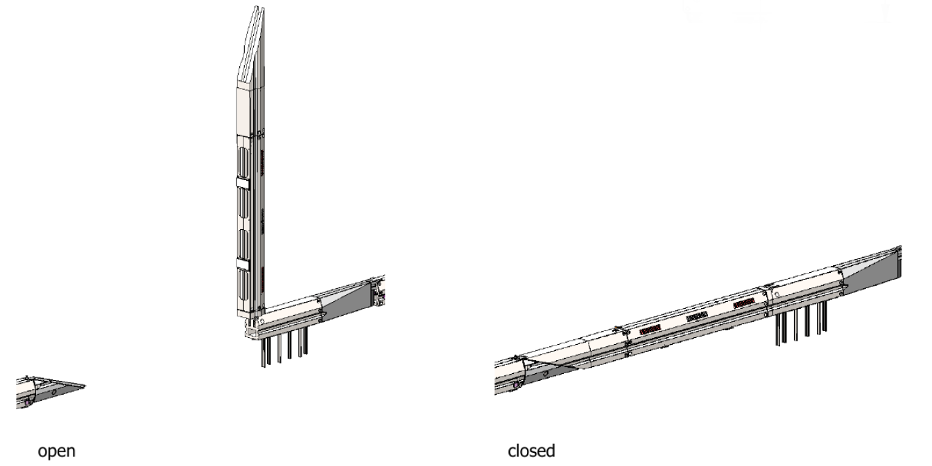 Faster response times for emergency services thanks to the "DynaRise". DynaRise is a vertically opening vehicle restraint system, designed for use on median stripes, for example in front of structures. With a fast opening time of under 1 minute and a passage width of 8 meters, emergency services can quickly change lanes and reach the scene of the incident faster. The DynaRise is operated fully automatically via the control center (optionally also via an app) or locally. In case of malfunction (e.g., power outage), operation of the DynaRise is still ensured by a battery pack. Thanks to the proven DynaWall profile and the sturdy locking mechanism, the system provides containment level H2 (EN1317). DynaRise can be installed individually or in combination with the median stripes crossover "DynaGate".